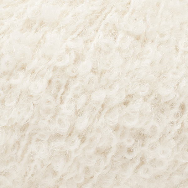 ‘Bouclé’ po francusku oznacza małe pętelki i odwołuje się do licznych supełków na czystej alpace, co nadaje tej włóczce charakterystyczny wygląd i podkreśla jej miękkość. Ubrania z włóczki DROPS Alpaca Bouclé są lekkie i puszyste.