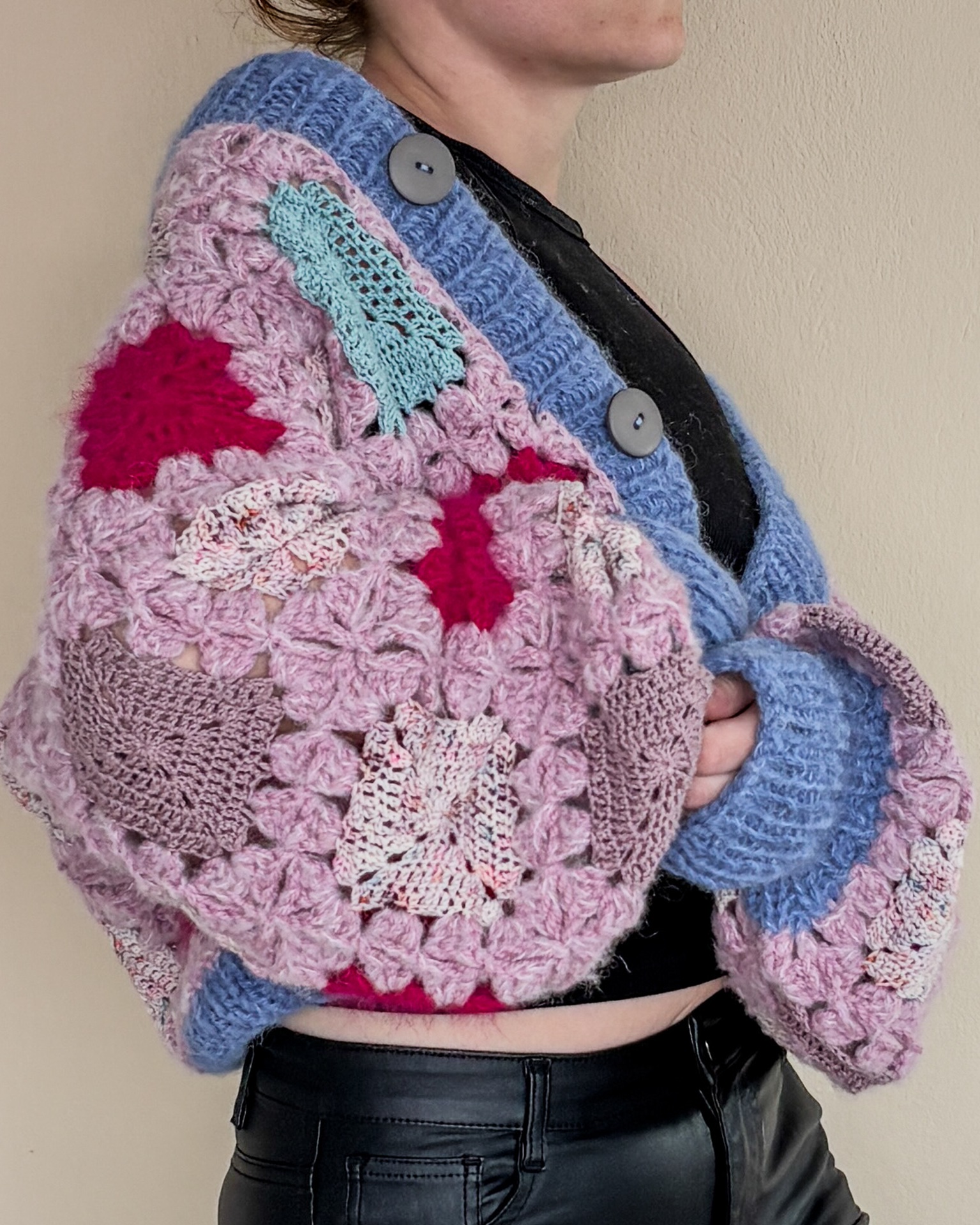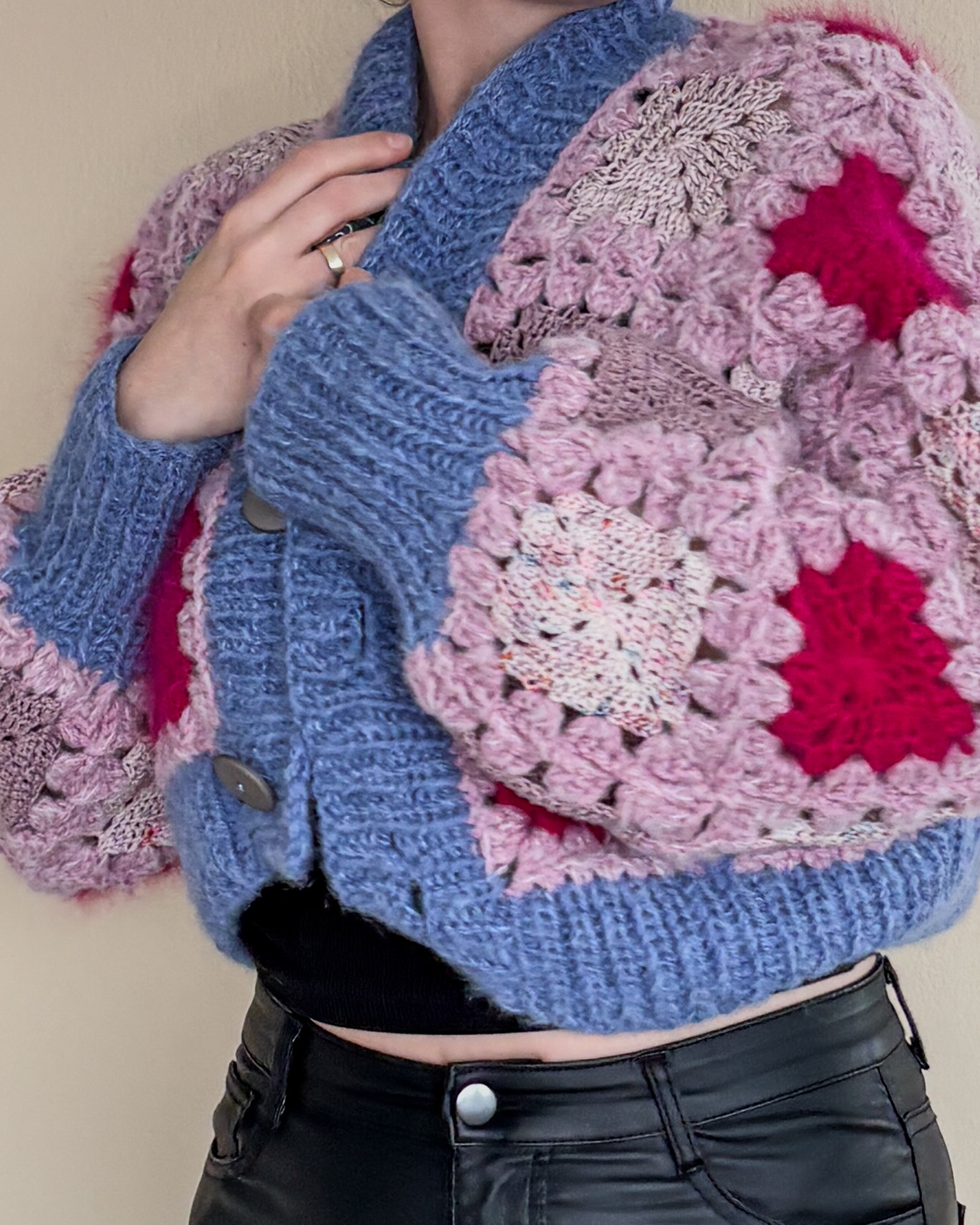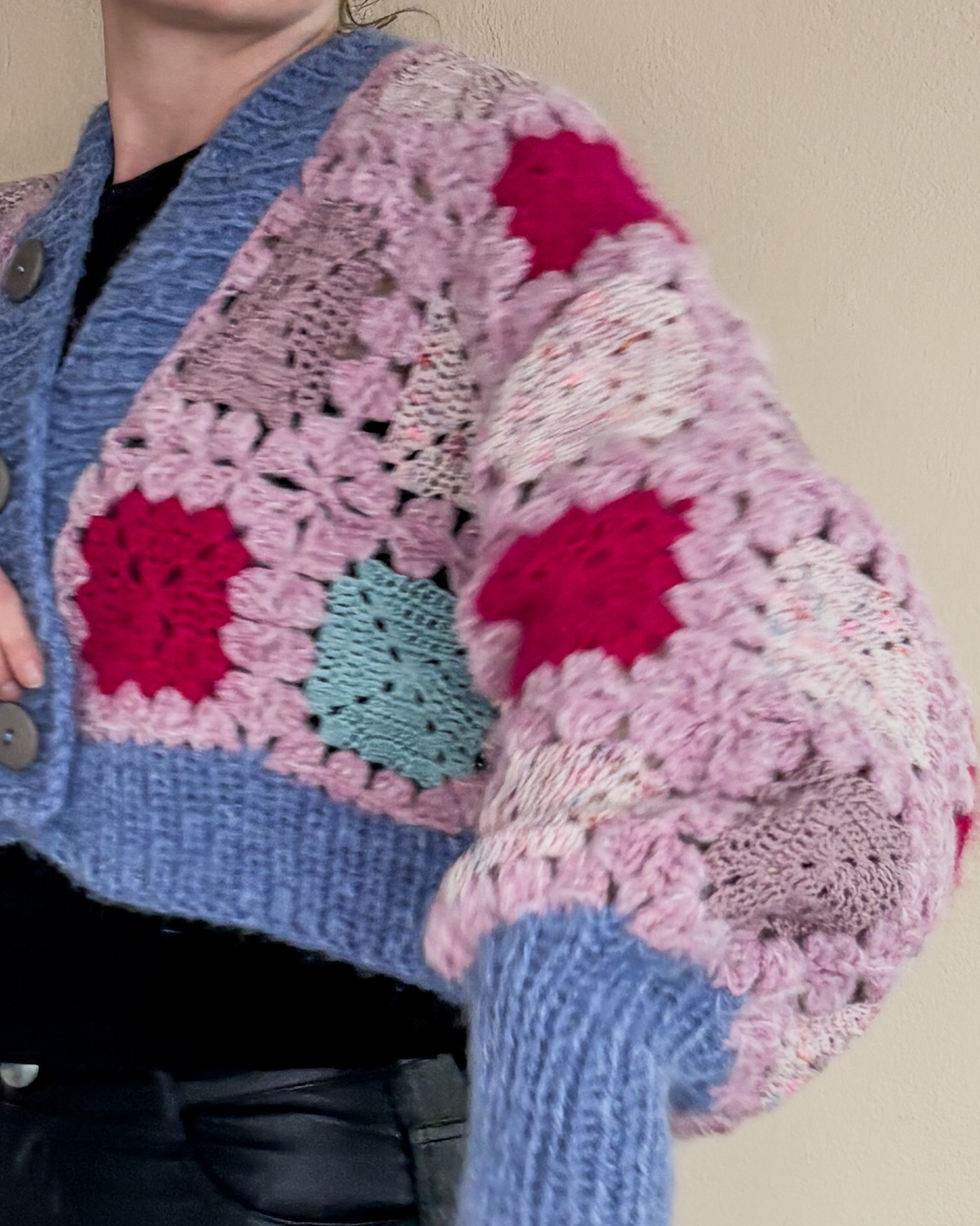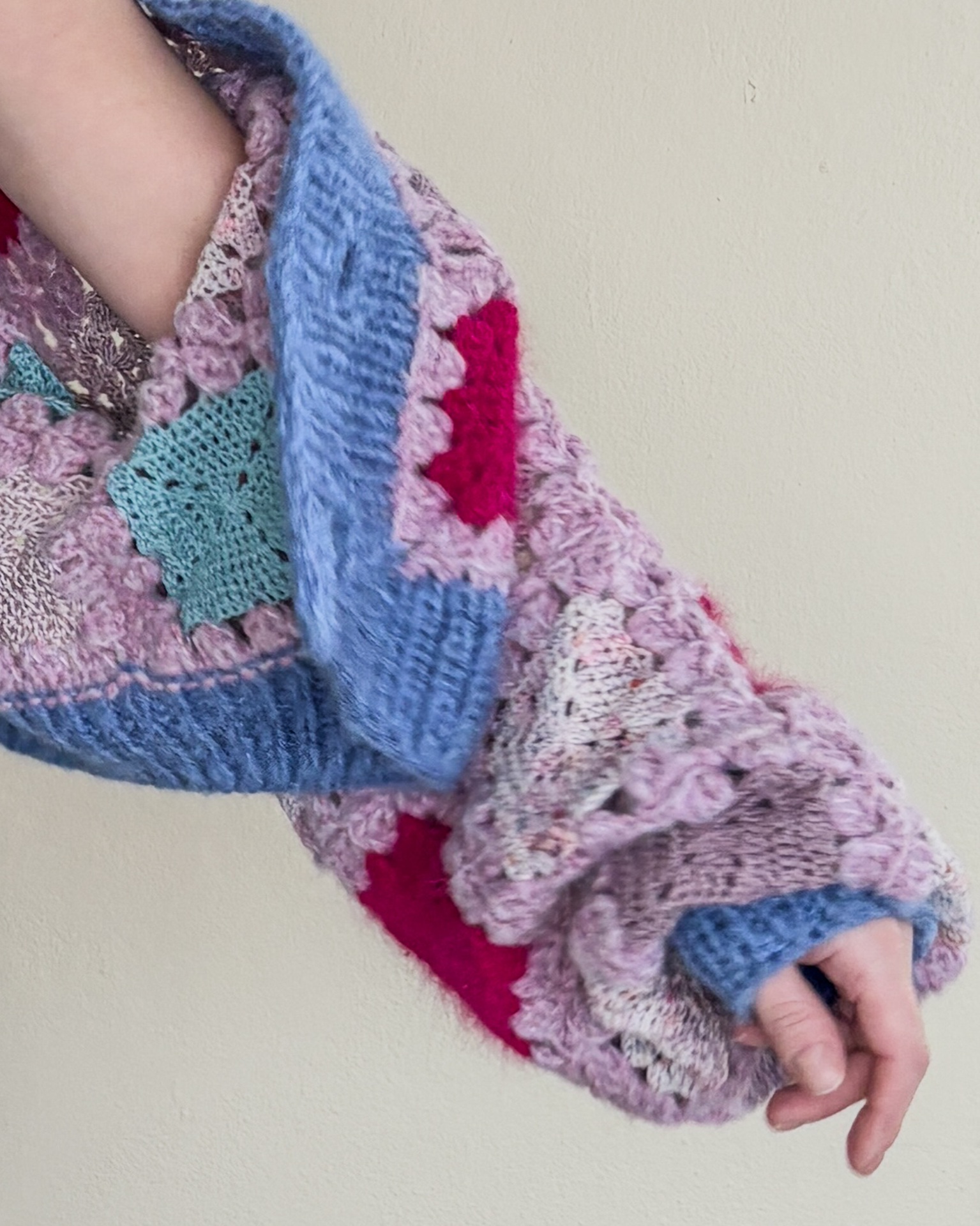 Wykonany w jednym egzemplarzu, lekki i miękki kardigan zapinany na guziki.